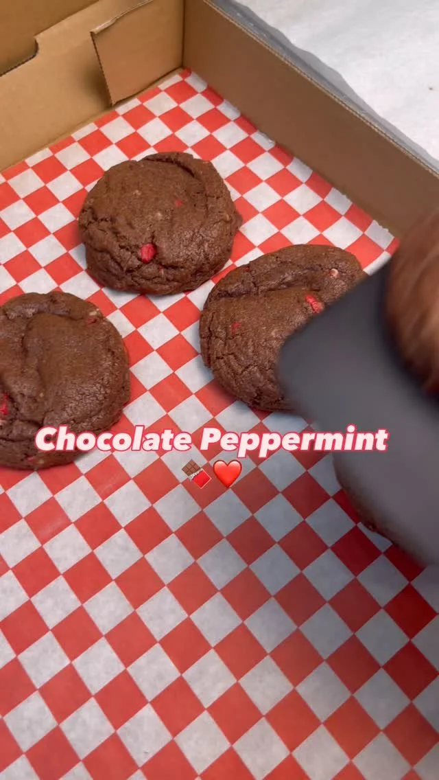 Our chocolatiest cookie dough mixed with bits of Andes Chocolate Peppermint Crunch Thins. Tis the season for sweetness!